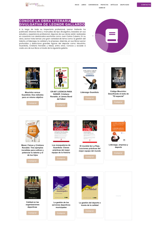 Soy autora de más de veinte libros sobre liderazgo, empresa y deporte. Destacan tÃtulos como “Código Mourinhoâ€, “Liderazgo Guardiola†o “CR-007 licencia para ganarâ€.